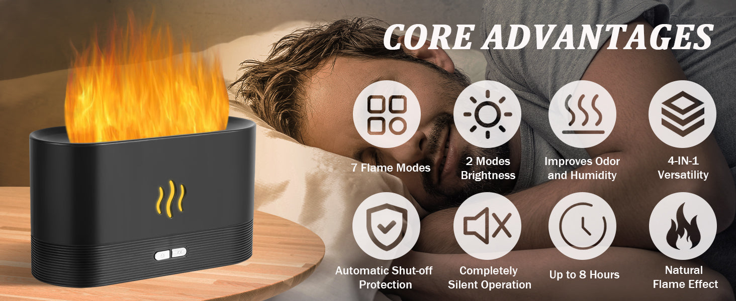 Bring the soothing feel of a cozy flame and calming aromatherapy into your home with our Aroma Diffuser Air Humidifier with Flame Light. More than just a diffuser, its gentle mist hydrates your air while the realistic flame effect creates a warm, inviting ambiance — perfect for unwinding after a long day, boosting your mood, and making any room feel like a tranquil retreat.